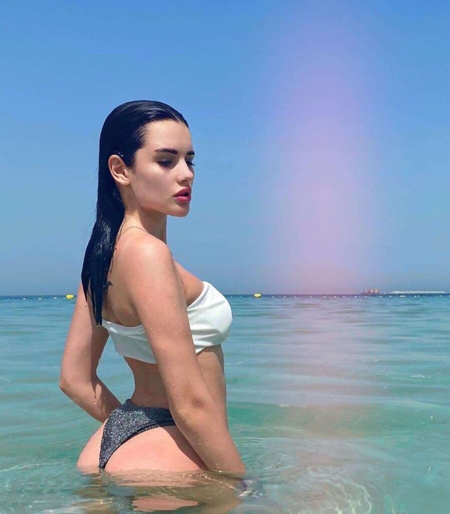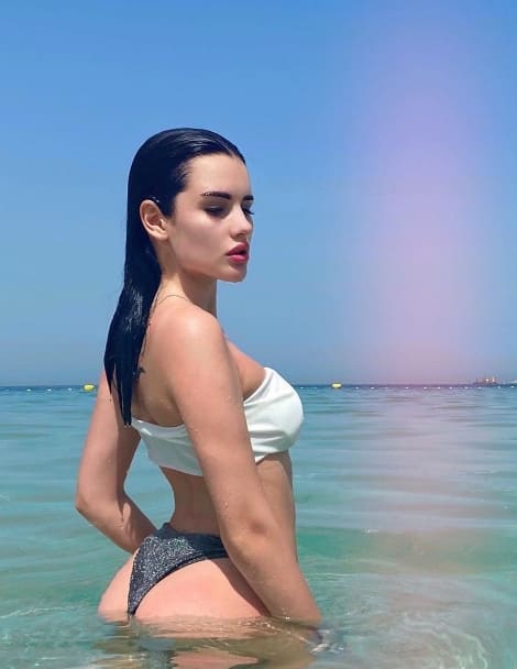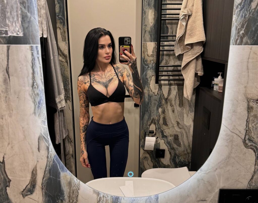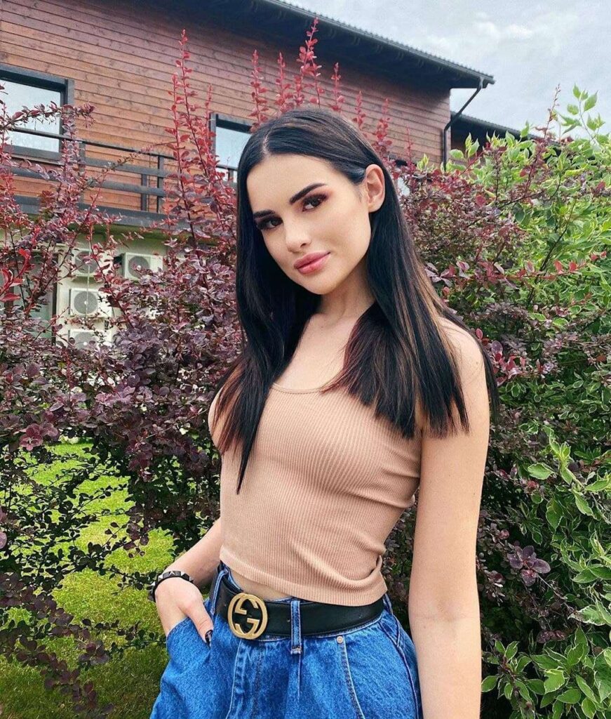 Природа щедро наградила её привлекательной внешностью: длинными ногами, пышной грудью и выразительными чертами лица. Благодаря активному образу жизни и регулярным занятиям спортом у Карины подтянутая фигура и упругие накаченные ягодицы.