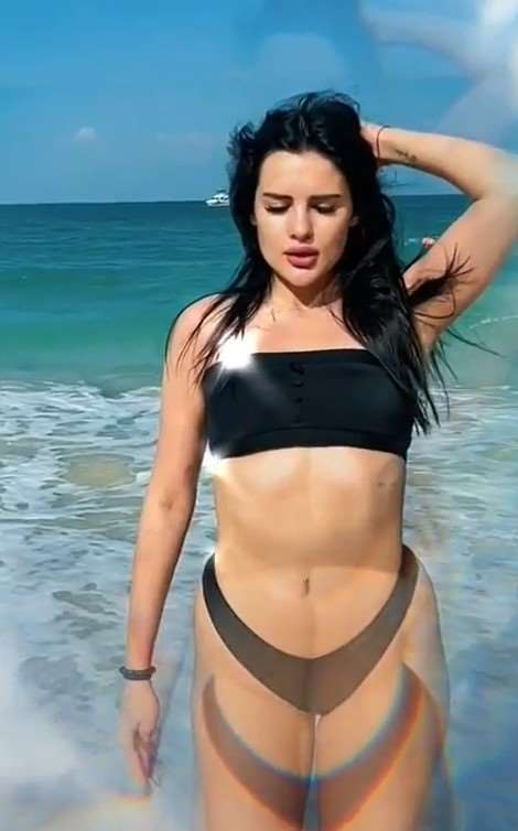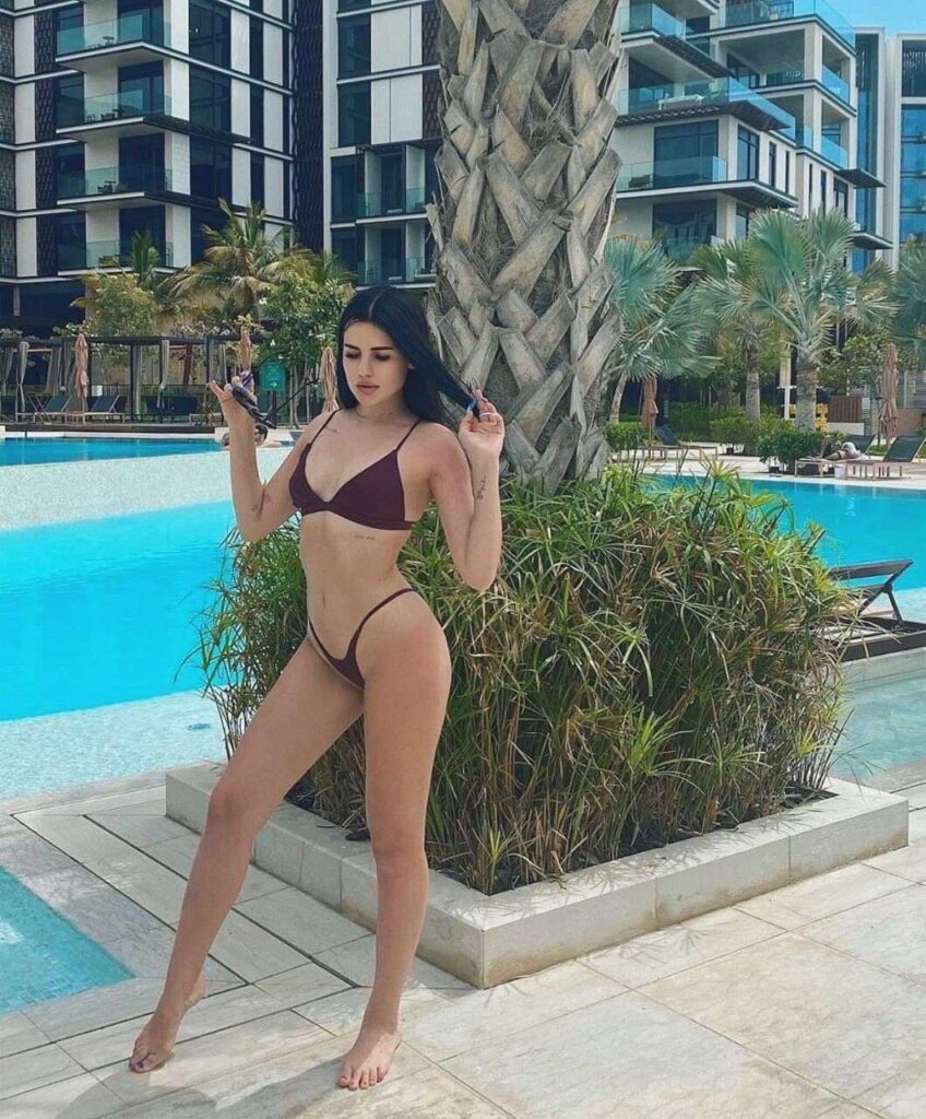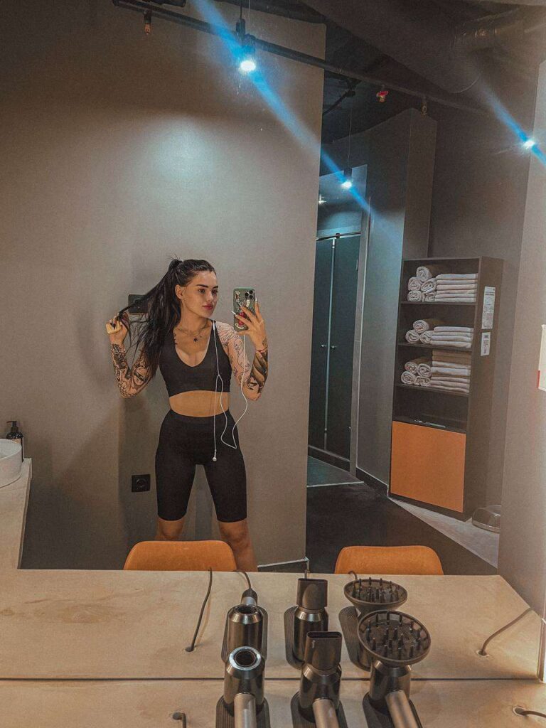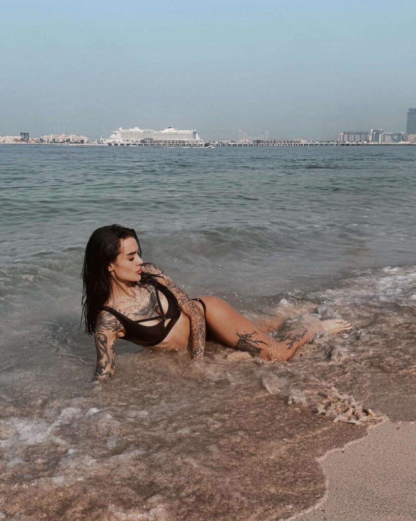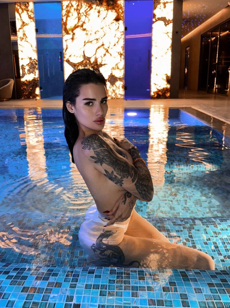Природа щедро наградила её привлекательной внешностью: длинными ногами, пышной грудью и выразительными чертами лица. Благодаря активному образу жизни и регулярным занятиям спортом у Карины подтянутая фигура и упругие накаченные ягодицы.