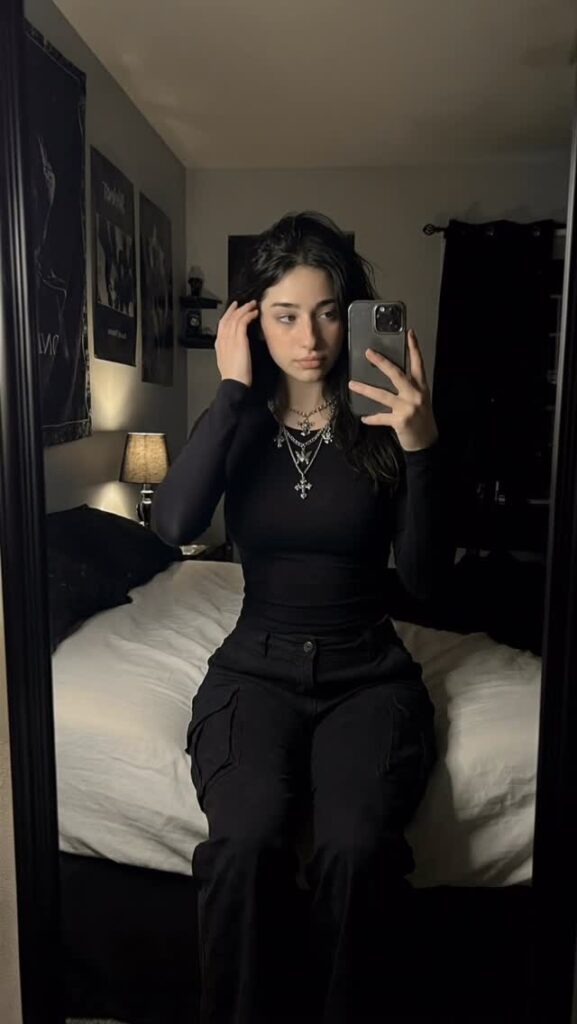 Сейчас у неё около 280–290 тысяч подписчиков, чуть больше 100 постов и всего 48–50 following — типичный микро/нано-инфлюенсер, но с очень высокой вовлечённостью: тысячи лайков под рилсами, комментарии в духе «Can I be your goth girl?» и активный комьюнити. Постит регулярно — почти каждый день новые переходы, танцы или outfit-идеи, и это работает: просмотры растут, фанаты просят больше.