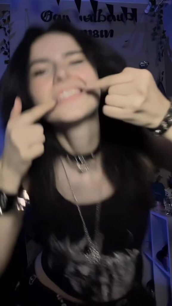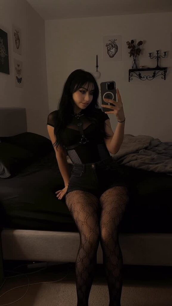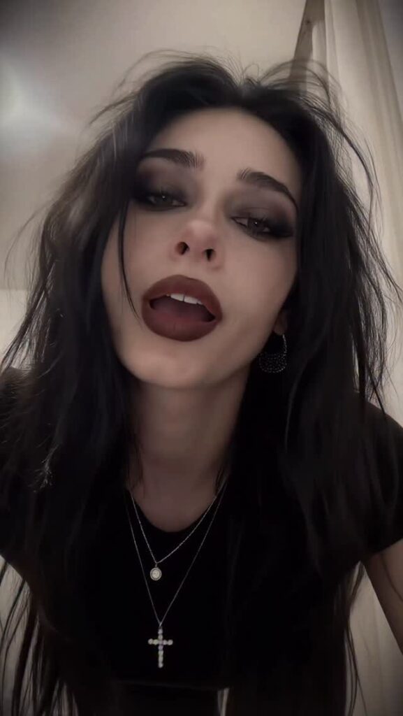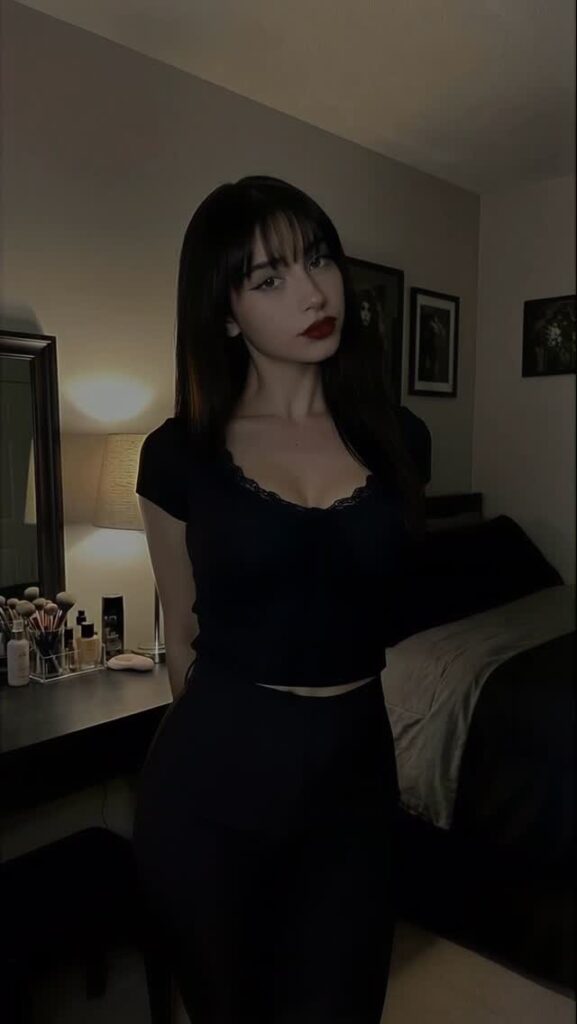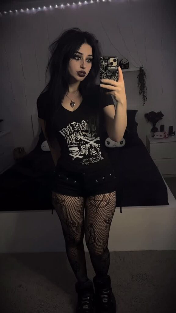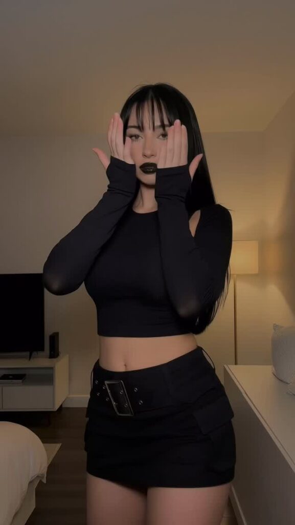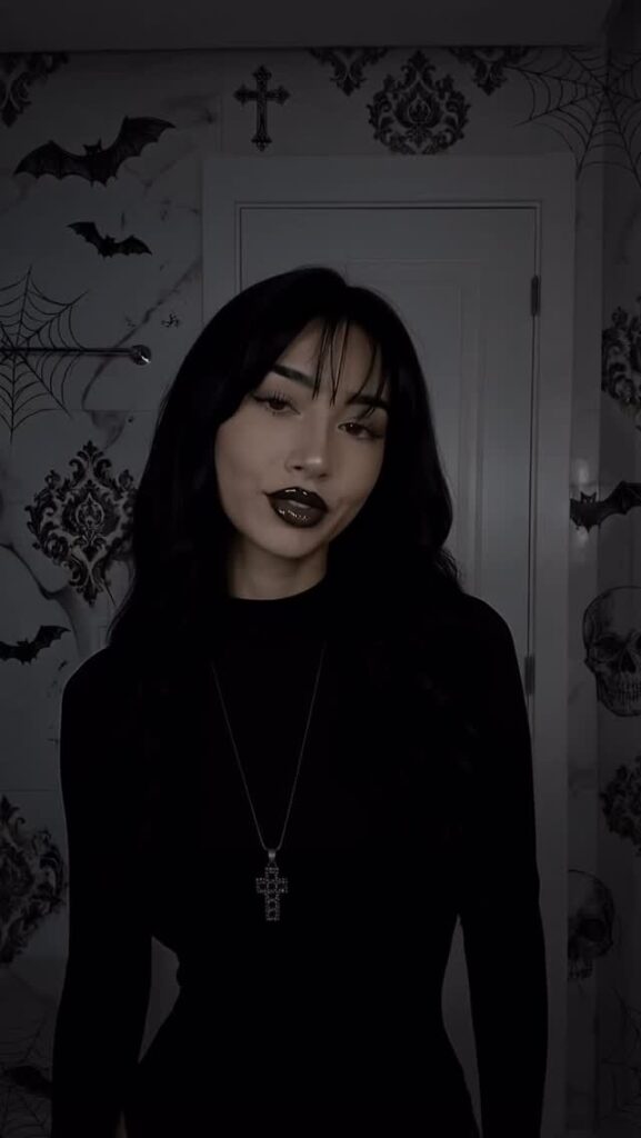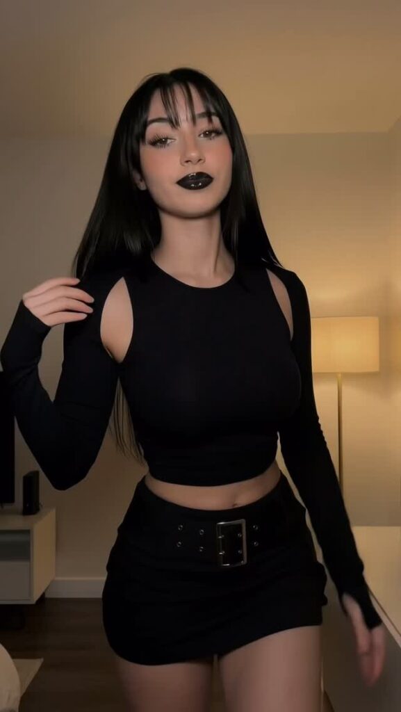 Контент — чистый гот-эстетик: чёрные наряды, драматичный макияж (глубокие смоки, тёмные губы, луки в стиле Frankie Stein из Monster High), корсеты, harness, юбки, цепи и кожа. Она обожает динамичные рилсы с переходами «до/после», где обычная девушка волшебным образом превращается в готическую королеву ночи. Танцы, makeup-рутины, «goth fit check», чёрный юмор, лёгкая сексуальность и атмосферные эффекты — всё это подаётся с высокой энергией и стилем.