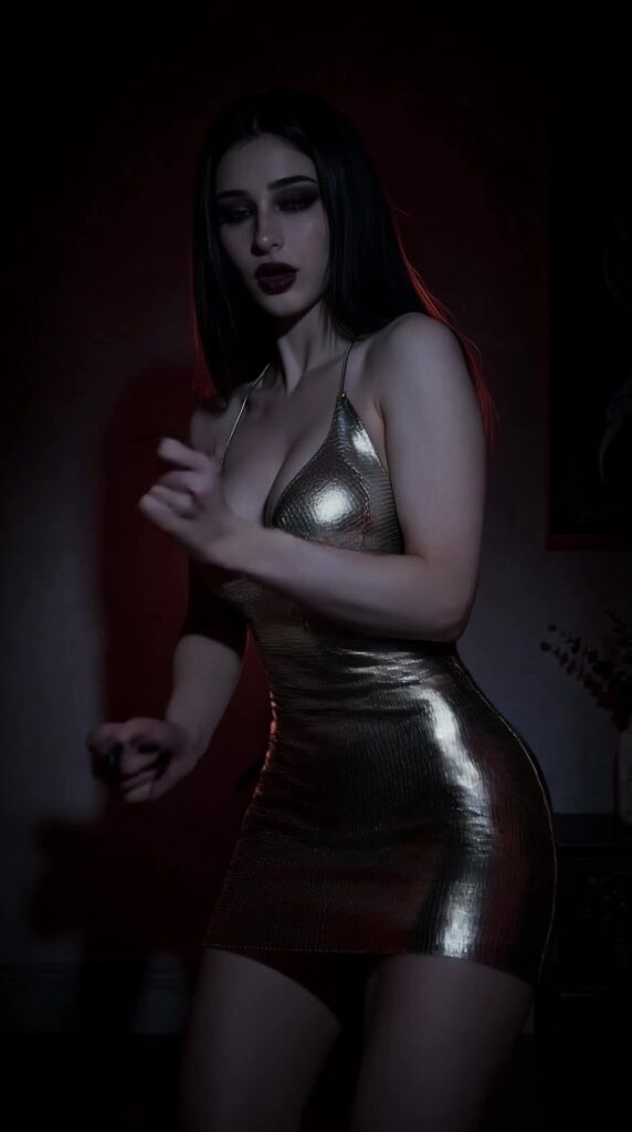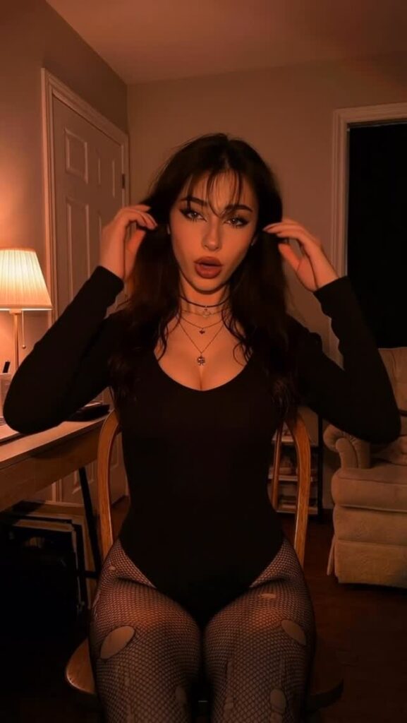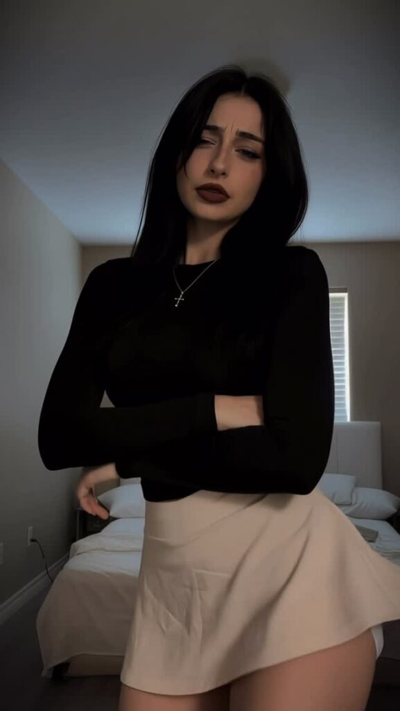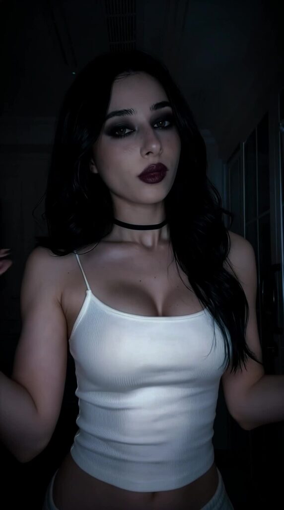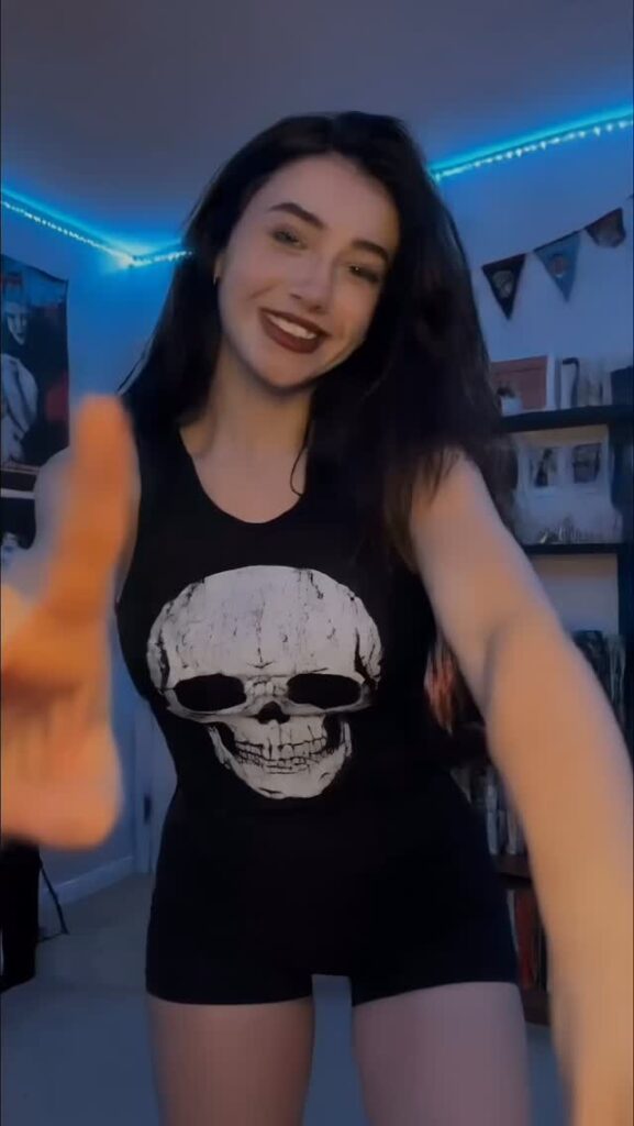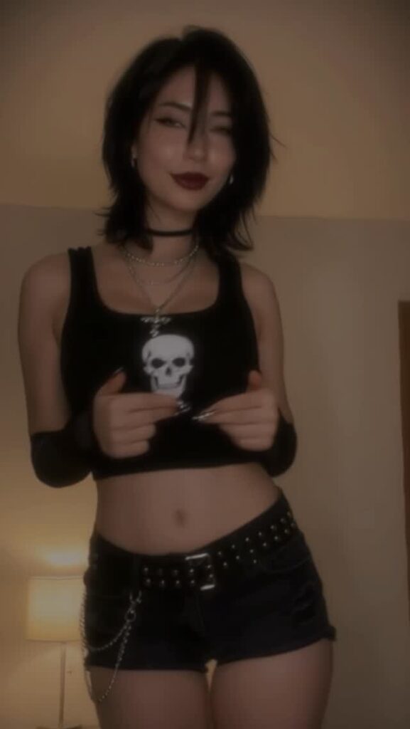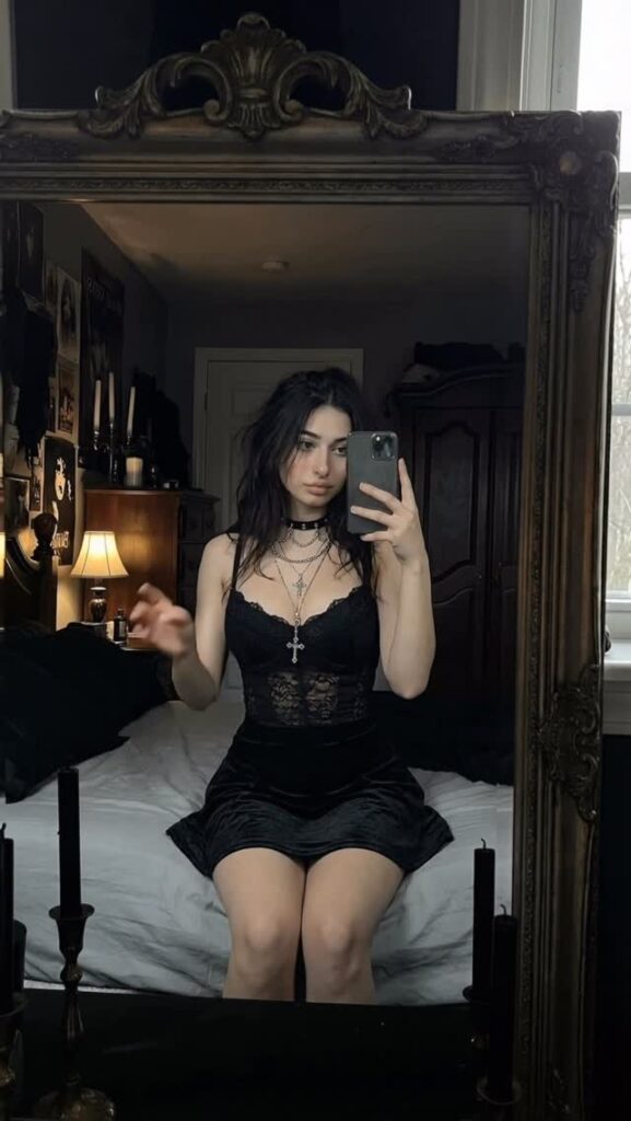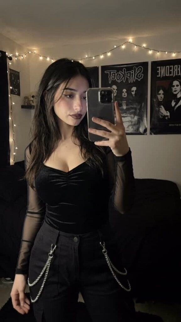 Контент — чистый гот-эстетик: чёрные наряды, драматичный макияж (глубокие смоки, тёмные губы, луки в стиле Frankie Stein из Monster High), корсеты, harness, юбки, цепи и кожа. Она обожает динамичные рилсы с переходами «до/после», где обычная девушка волшебным образом превращается в готическую королеву ночи. Танцы, makeup-рутины, «goth fit check», чёрный юмор, лёгкая сексуальность и атмосферные эффекты — всё это подаётся с высокой энергией и стилем.