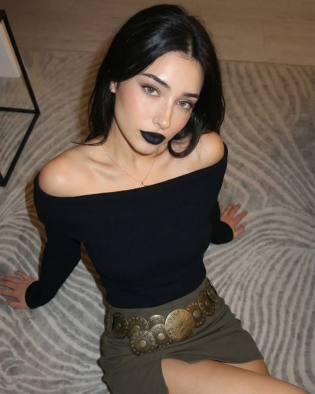 Био аккаунта звучит так: «21 • Florida The girl from your nightmares (<-_-) Shh… don’t tell my dad». Это сразу задаёт тон: готическая девушка из кошмаров, с лёгким бунтарским юмором, мистикой и намёком на тайну. Всё в духе тёмной романтики и подросткового вызова.